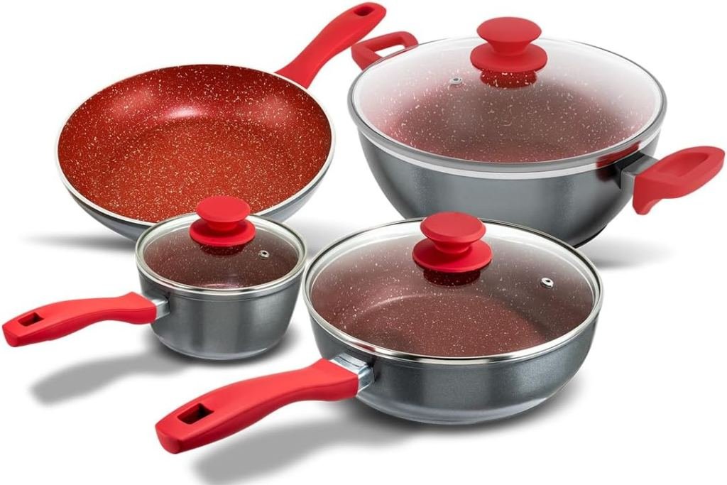 Aqui está a grande inovação. O revestimento Redstone é, em essência, um sistema de antiaderência cerâmica super reforçado. As “9 camadas” referem-se a múltiplos estágios de tratamento aplicados sobre o alumínio – incluindo camadas de primer, reforços minerais e o acabamento final – que juntos criam uma superfície extremamente resistente.